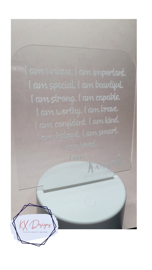 Custom Positive Affirmations Acrylic LED night lights for kids