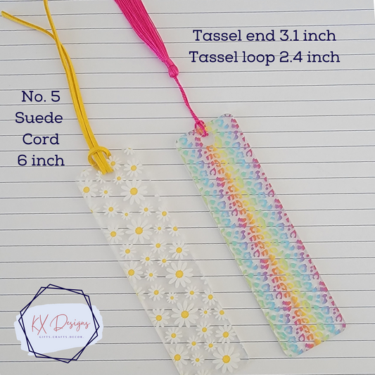 Patterned Acrylic Bookmarks with tassels or suede cords