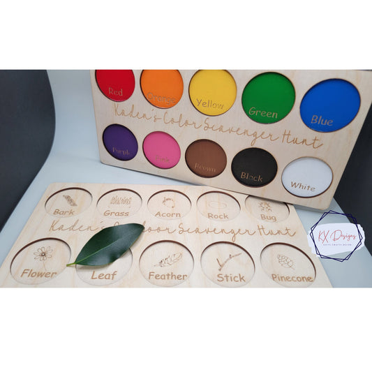 Nature Scavenger Hunt Custom Gift for Kids, Wooden Outdoor Montessori Learning Board