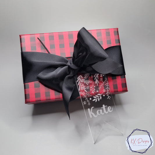 Winter Gift Tags, Name Tags, Wooden and Acrylic Gift Tags, Personalized, Engraved, ribbon options, Bulk options: see description