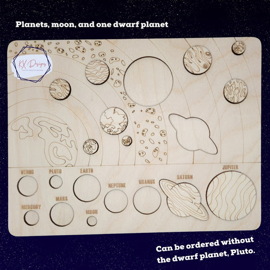 Solar System Puzzle, wooden puzzle, planets, moon, dwarf planet, Montessori, space, homeschool and classroom STEM Science learning activity