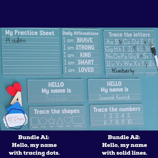 Tracing Panel Letters, Numbers, Name, Shapes, Blank, Daily Affirmations, Acrylic, School Readiness, Various Designs, Preschool, Kindergarten